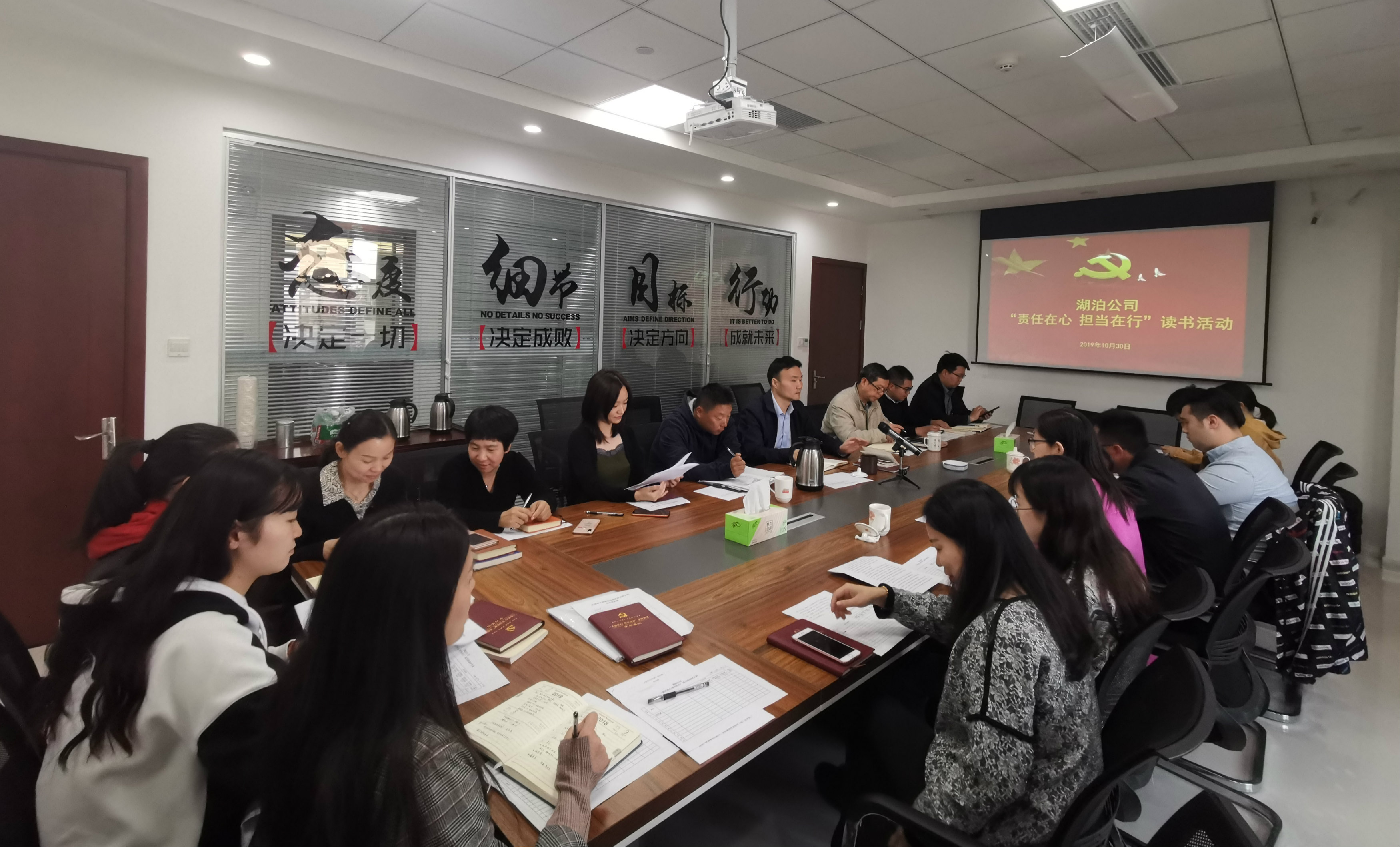 会上,大家结合各自岗位的工作实际,围绕“责任”、“忠诚”这两大主题,用通顺的言语、充沛的情感,生动地表述了自己的读书心得:靳记磊由爱国主义电影《攀登者》展开,讲述了他对责任与忠诚的理解;蒋焱结合投标工作的实际,用鲜明的事例和生动的细节表达了她对责任一词的认知;钱程远联系最近大热的中国国家篮球队败北新闻,对责任与忠诚这两种品质,进行了自己的阐释。